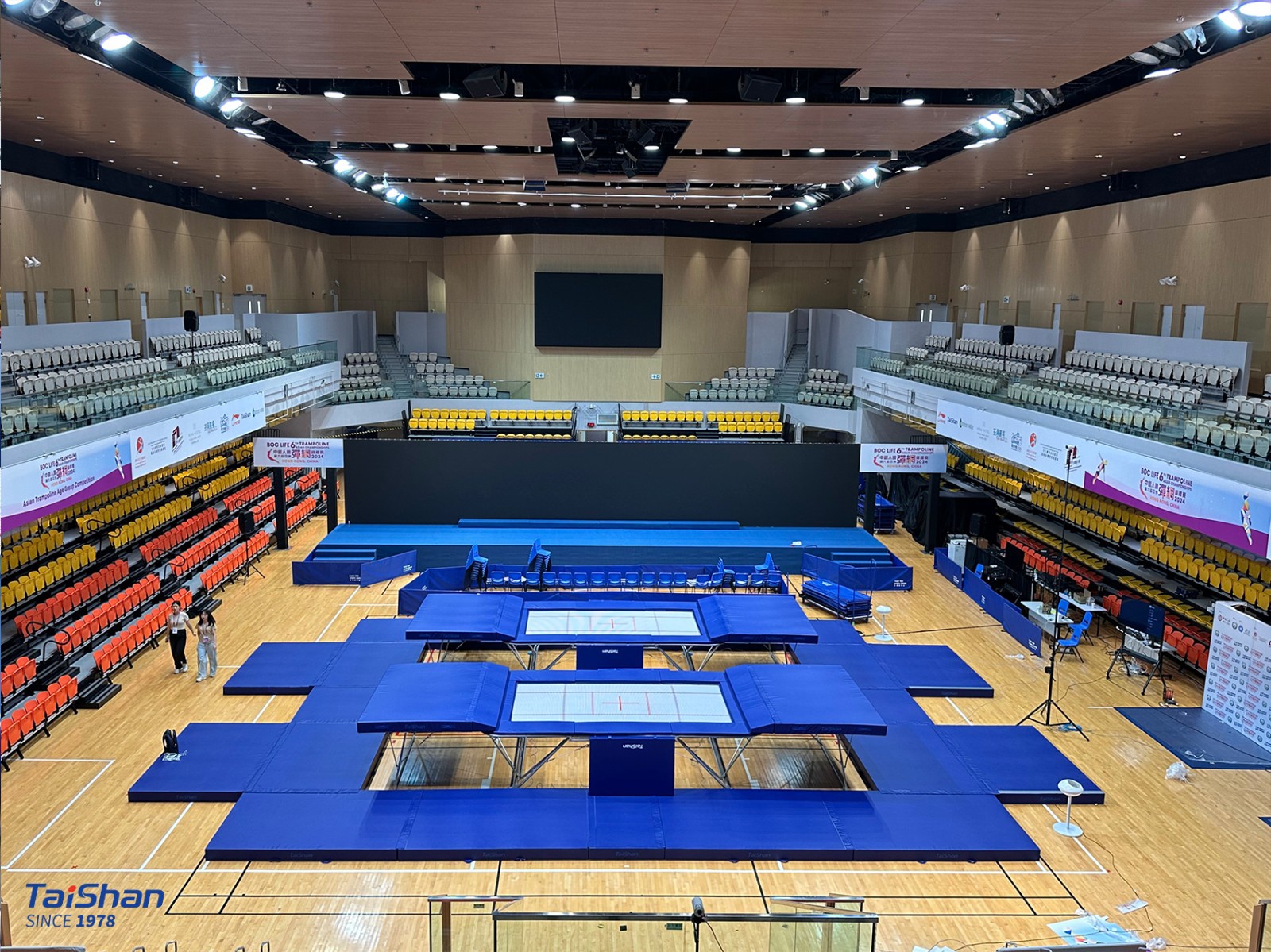 In order to ensure the excellent performance of gymnasts, Taishan Sports’ professional service team went to Hong Kong in advance to prepare for the installation and debugging of the competition venues. The state-of-the-art gymnastics equipment provided by Taishan Sports will shine in the competition.