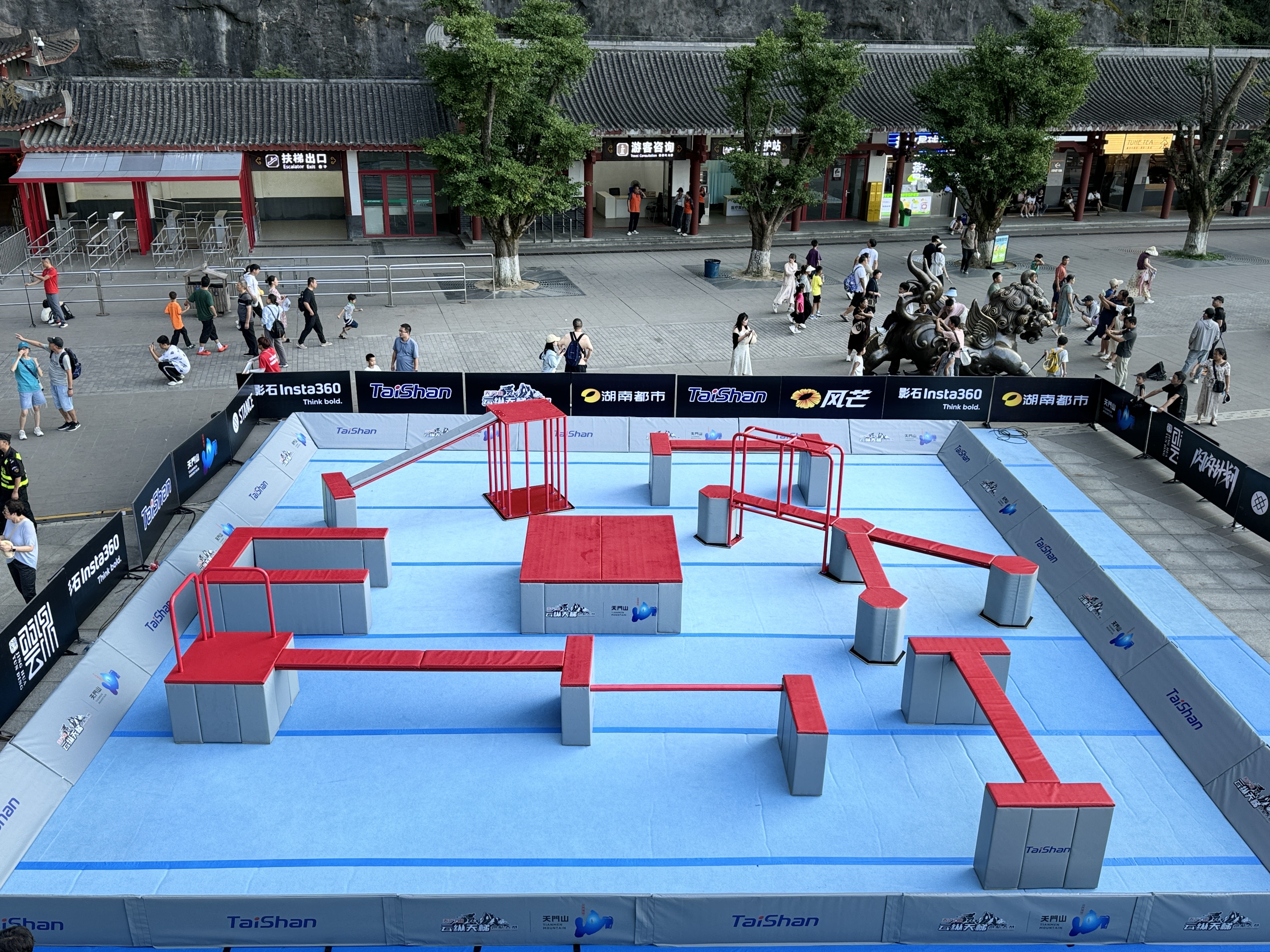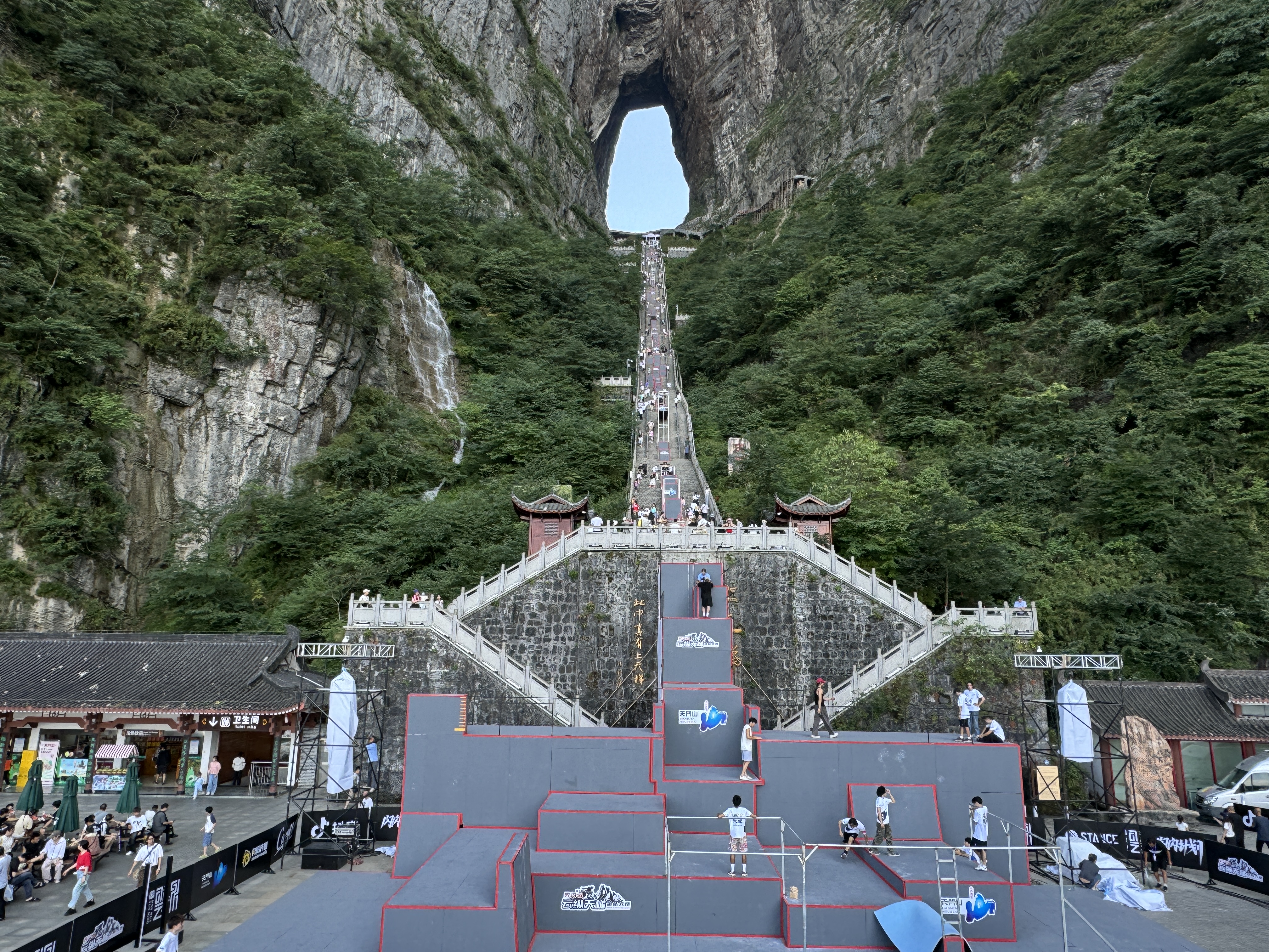 本场赛事的赛道依附于天门洞999级天梯搭建,赛道起点设在世界海拔最高天然穿山溶洞“天门洞”洞口,沿着狭窄陡峭、共有999级台阶的登山步道“天梯”向下一直延伸至游客广场,全长近300米,垂直落差达150米,分五缓四陡,平均斜度45度,共设置108组障碍道具。有了凯发(K8)体育跑酷器材的加持,赛事将更加精彩刺激。
