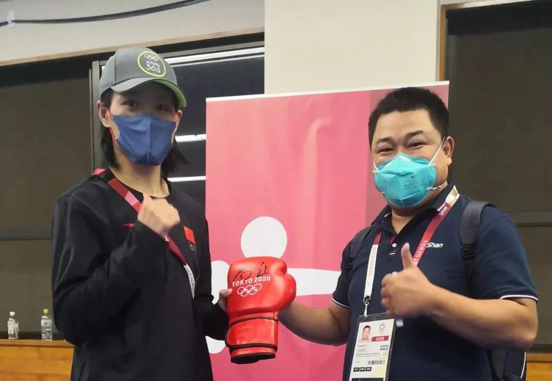 东京奥运会女子拳击69公斤级银牌获得者——中国运动员谷红签名凯发(K8)体育拳击手套